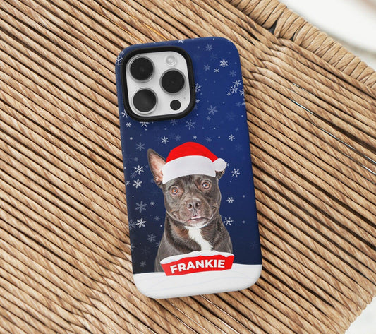 Custom Pet Christmas Phone Case with Dog Cat Photo, Personalized Gift