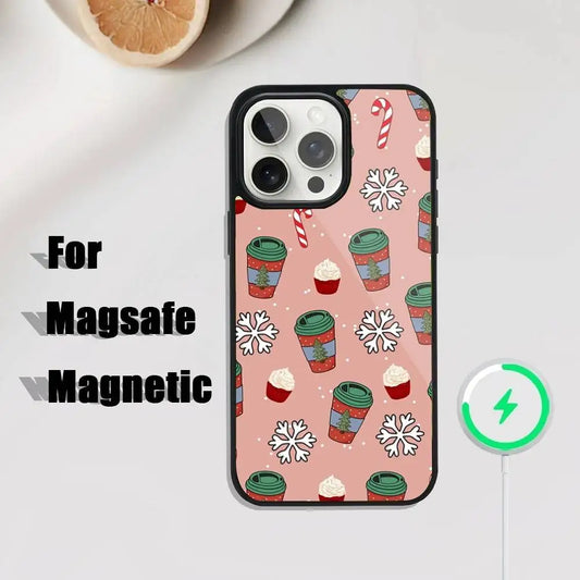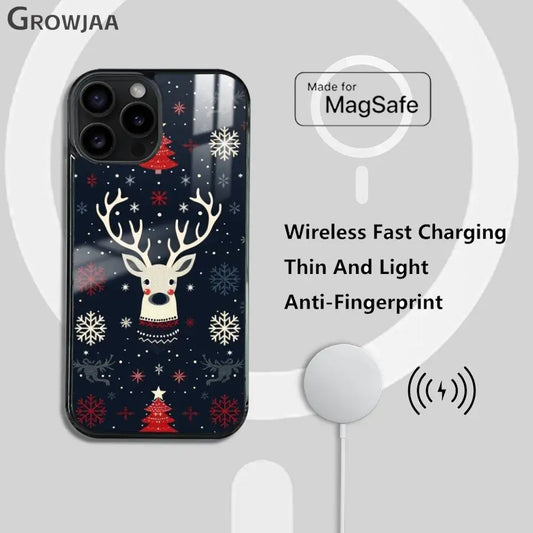 Merry Christmas New Year Phone Case MagSafe Magnetic for iPhone 16 15 14 13 12 11 Pro Plus Max Mini Wireless Charger Funda