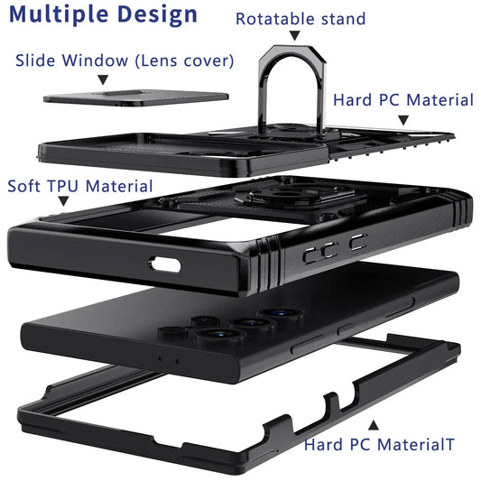 For Samsung Galaxy S25/S25+/S25 Ultra/S25 Edge/S24/S24 Plus/S24 Ultra/S24 FE Case Hybrid Kickstand Camera Protection Hard Cover