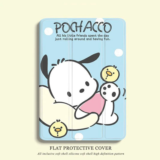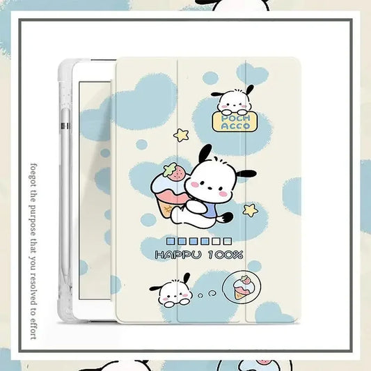 Sanrio Pochacco Cartoon Case For Pro 2020 11in 8th 9th 10th Generation Air 3 4 5 Mini 6 2017 2018 9.7 With Pen Slot Rotate Cover