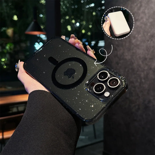 Magnetic Case for iPhone 16 16E 15 14 13 12 Pro Max Plus Cover Shimmering Starry Clear Shockproof Mag-safe Shell Phone Fundas