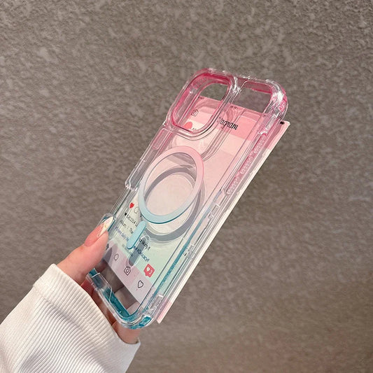 3 IN 1 Gradient Clear Magnetic Shockproof Case For iPhone 16 15 14 13 12 11 Pro Max Ultra Slim Anti Slip Wireless Charging Cover