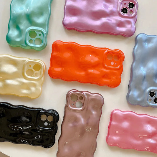Fashion Meteorite Wave Bubble Silicone Phone Case For iPhone 16 15 Plus 14 13 12 11 Pro Max Luxury Wavy Candy Shockproof Cover