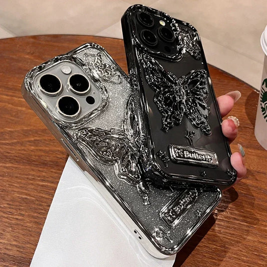 Butterfly Stand Plating Phone Cases For IPhone 16 15 Pro Max 14 13 12 11 Gradient Glitter Protect Shockproof Back Cover
