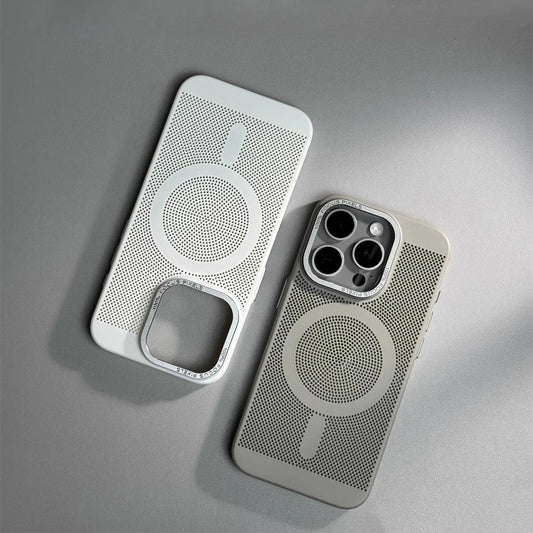 Honeycomb Grid Hole MagSafe Case for iPhone 16 15 Pro Max 14 Alloy Lens Summer Heat Dissipation Magnetic Back Cover PC Shell