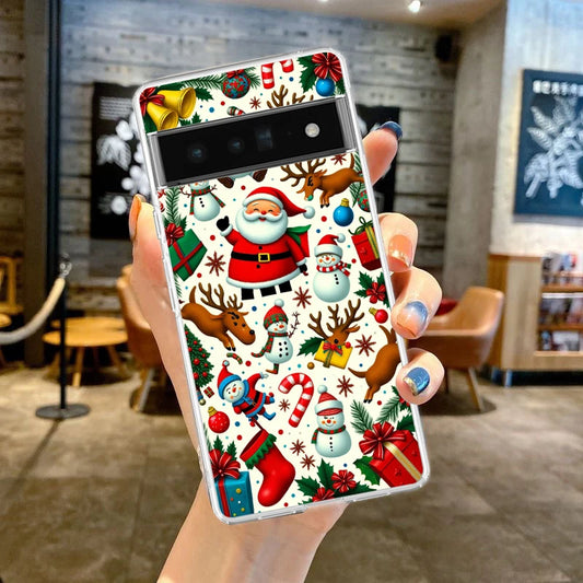 Phone Case Cover for Google Pixel 9 8 7 6 5 4 4XL 7A 6A 5A 4A 3A Pro XL 5G Transparent Soft TPU Shell Merry Christmas Pattern