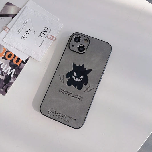 Japan Anime Pocket Monsters Pokémon Gengar Leather Laser Phone Case For iPhone 16 15 14 13 12 11 Pro Max Shockproof Hard Cover
