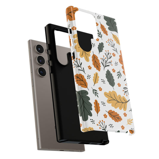 Samsung Tough Phone Case – Vintage Leaf and Flower Design, Durable Protection, Classic Aesthetic