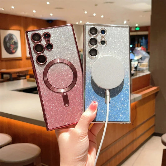 Glitter Luxury Magnetic Woman Case For Magsafe For Samsung Galaxy S24 S23 S22 S25 Ultra Plus Accessories Wireless Charging Cover