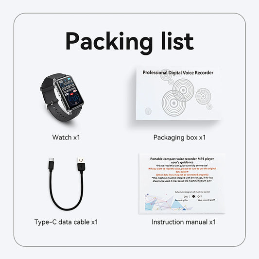 S18A Smart Recording Watch AI Intelligent Voice Recorder Real-time Transcription Translation Conversation Recording Bracelet