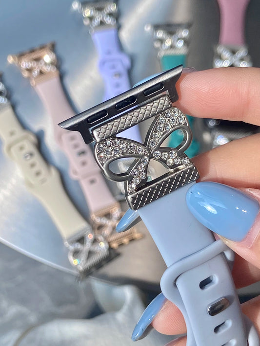 Luxury Diamond Bowknot Silicone Strap For Apple Watch S10 9 8 7 6 SE 5 4 3 46/45/44/42/41/40/38mm IWatch Ultra 2 49mm