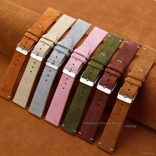 Quick Release Soft Suede Strap 22mm 18mm 20mm for Samsung Watch6 5/4/3 Calfskin Bracelet for Women Men Wristband Hand Sewn Band