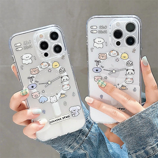 Cute Cartoon Animal Dog Cat Magsafe Clear Phone case For iPhone 11 12 13 14 15 16 Pro Max Plus Wireless Charging Magnetic Cover