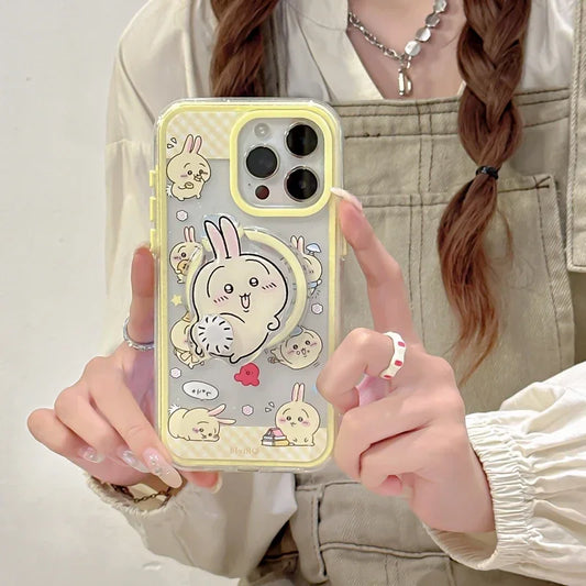 Cute Cartoon Japan Anime Chiikawa Magnetic Grip Holder Magsafe Wireless Charge Phone Case For iPhone 16 15 14 13 Pro Max Cover