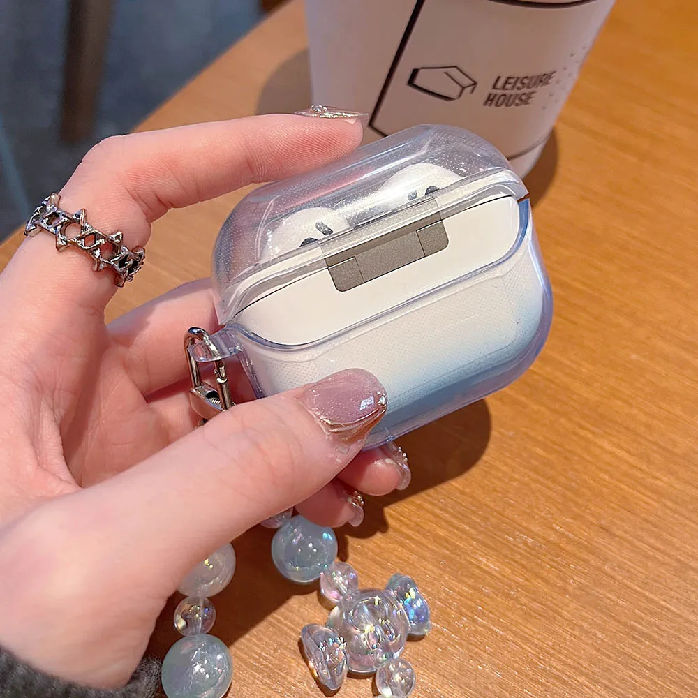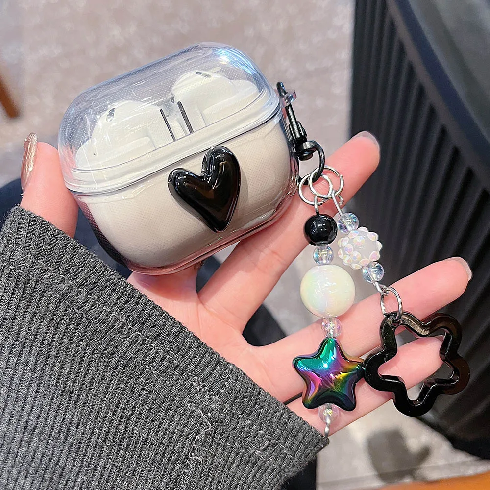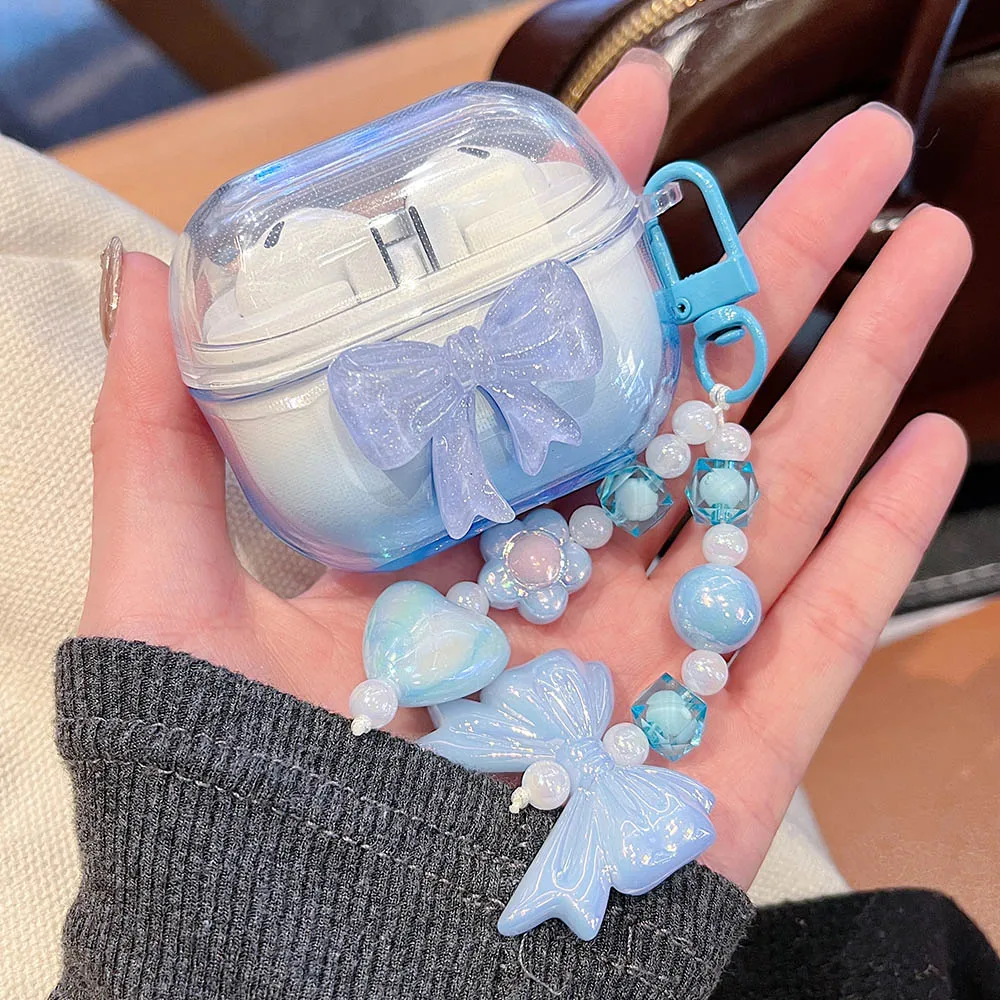 Korean Bow Flower Heart Clear Case For Samsung Galaxy Buds 2 Pro Live FE Buds 3 Pro Earphone Cover Soft Transparent with Pendant