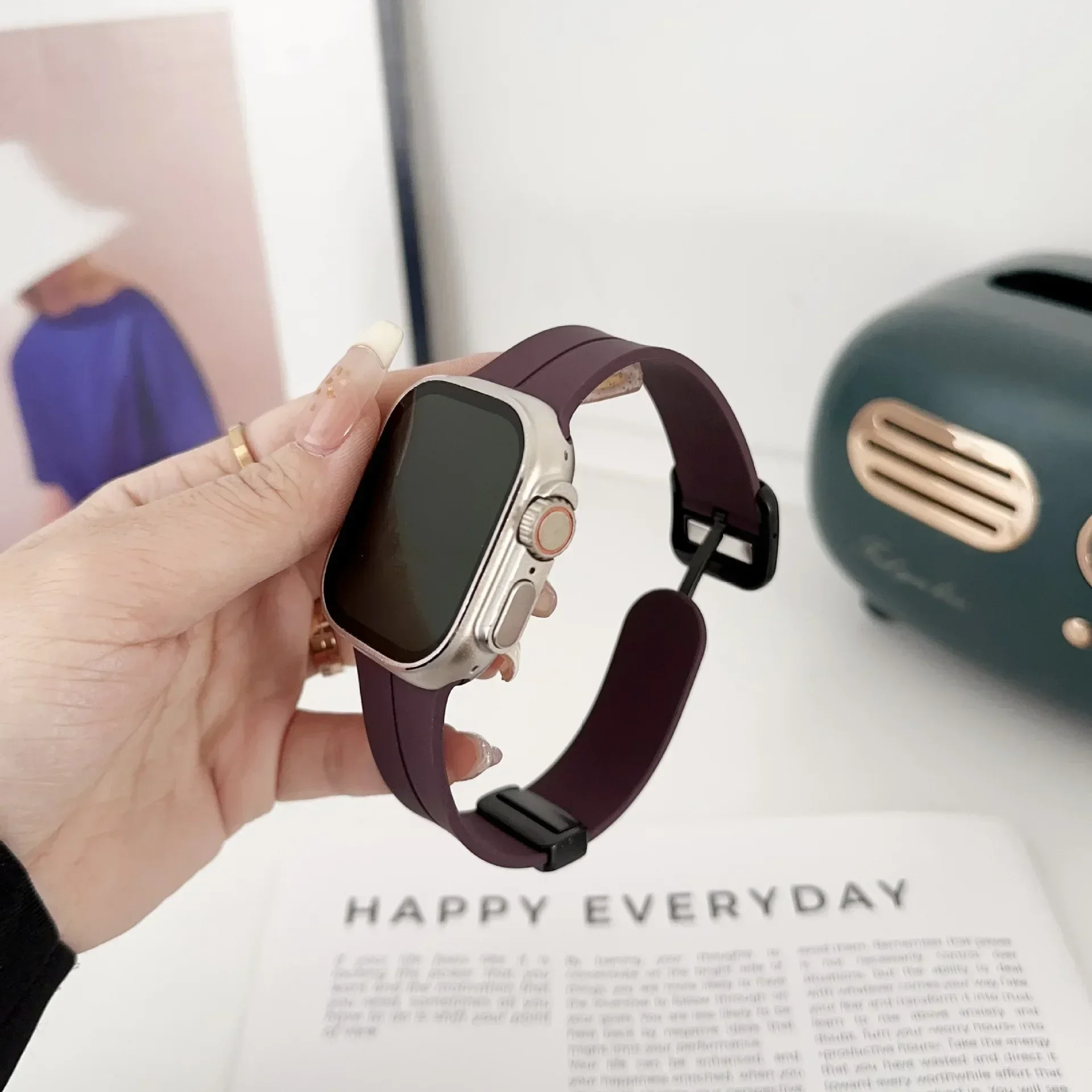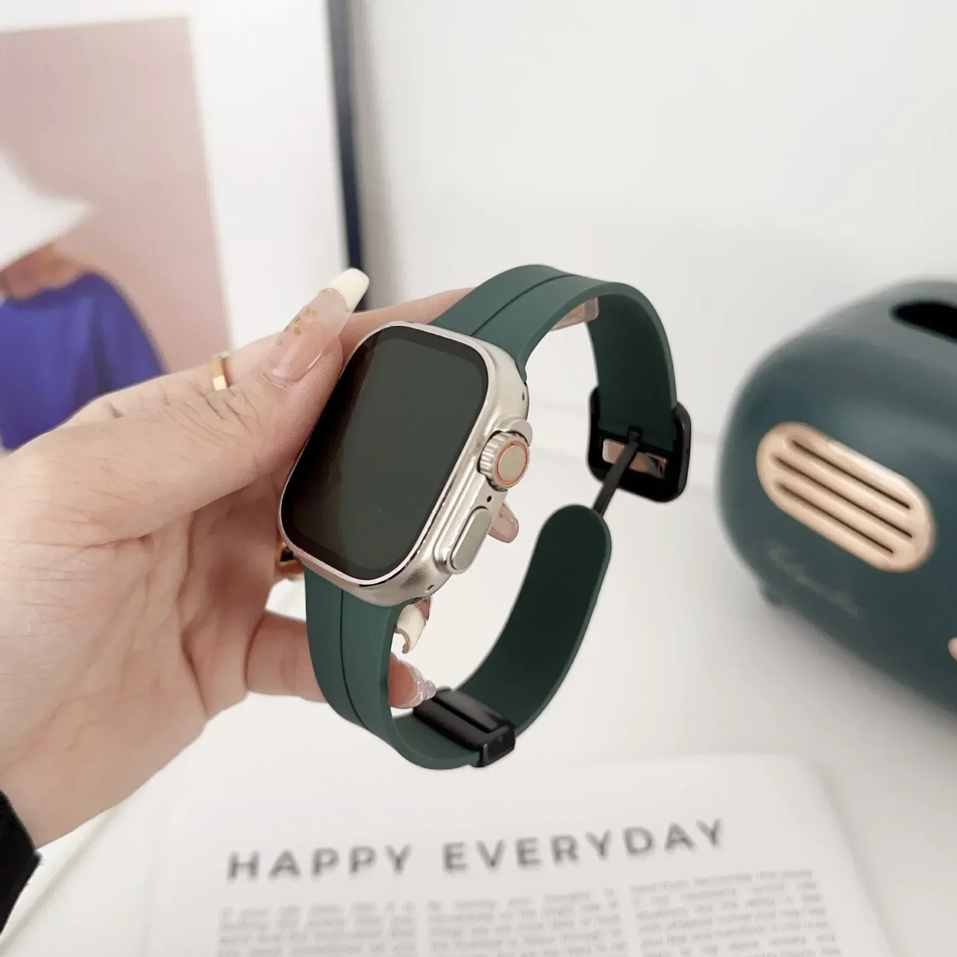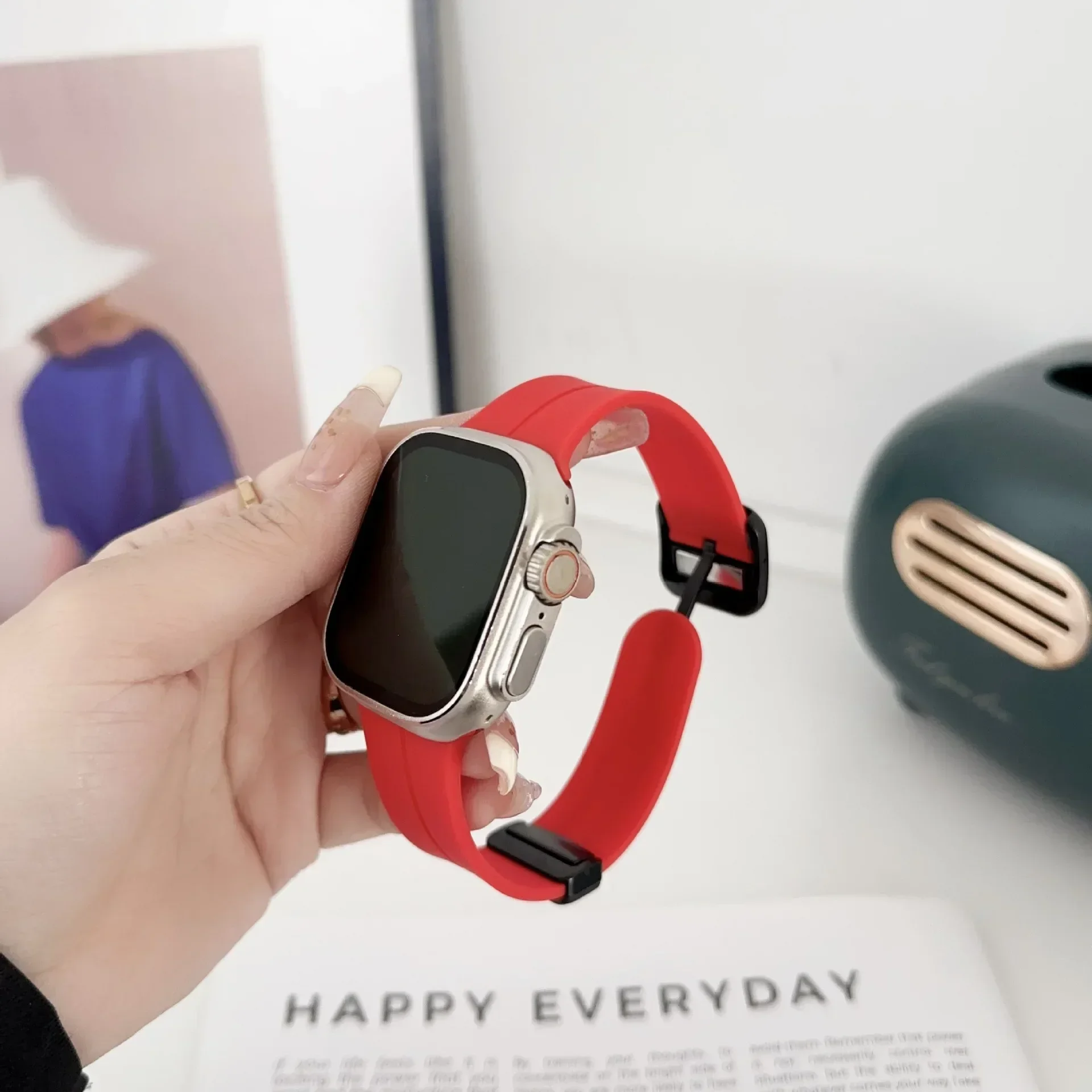 New Magnetic Buckle Silicone Strap For Apple Watch Band 44mm 45mm 38mm 49mm 40 42 41mm Sport Bracelet iWatch ultra 2 9 6 7 8 SE