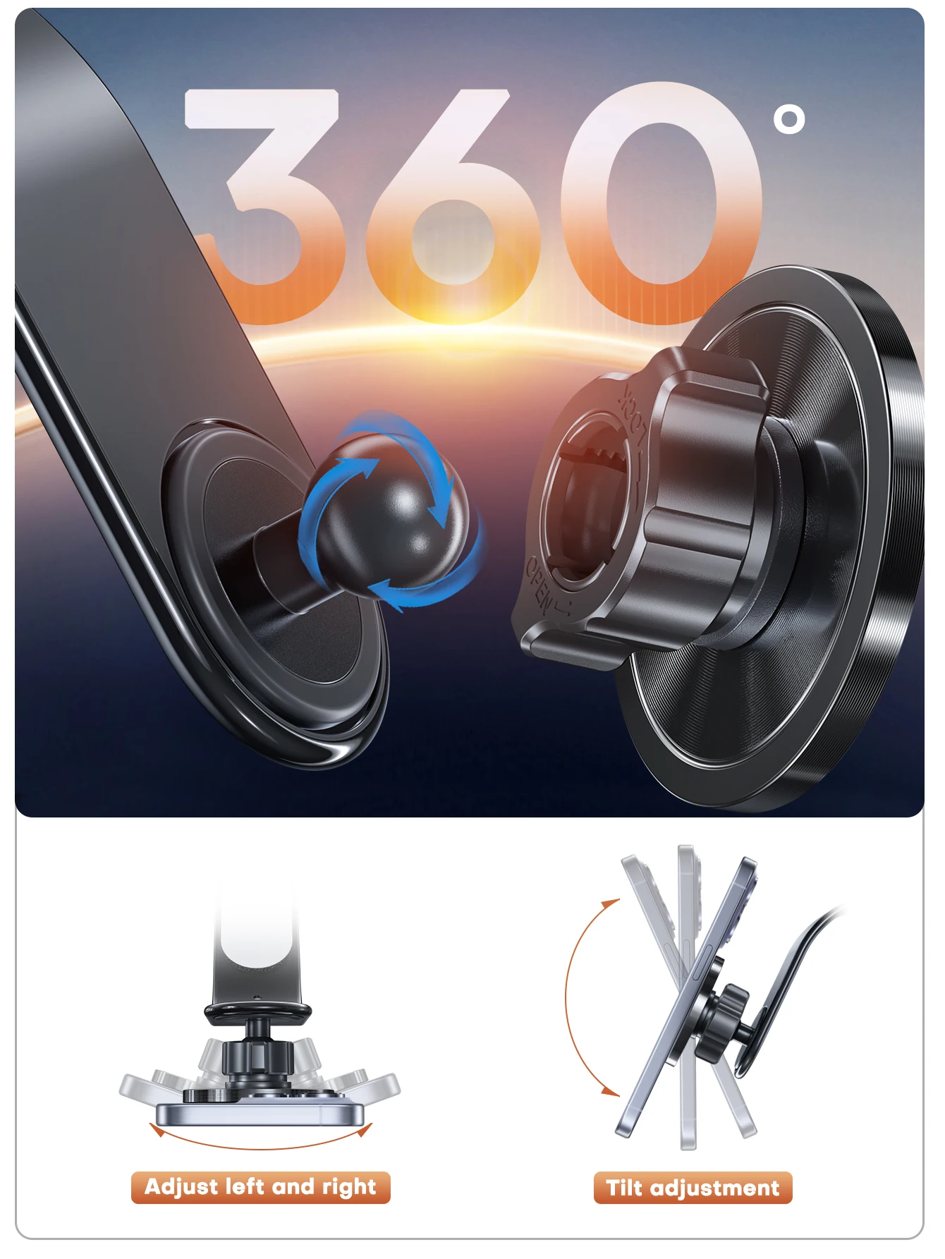 QOOVI Magnetic Car Phone Holder Dashboard Cellphone Stand Air Vent Magnet 360°Rotating GPS Mount for iPhone 16 15 Xiaomi Samsung