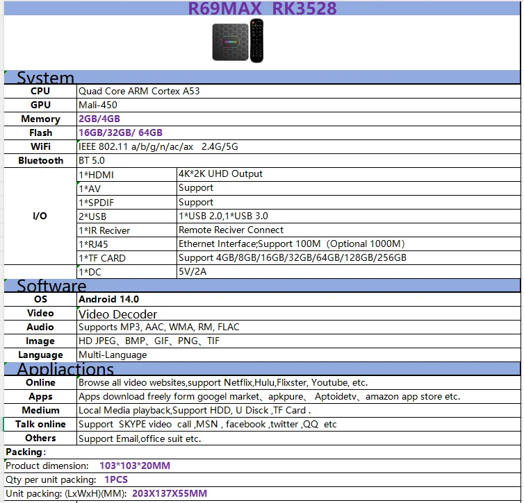 Product name: R69 Max TV box