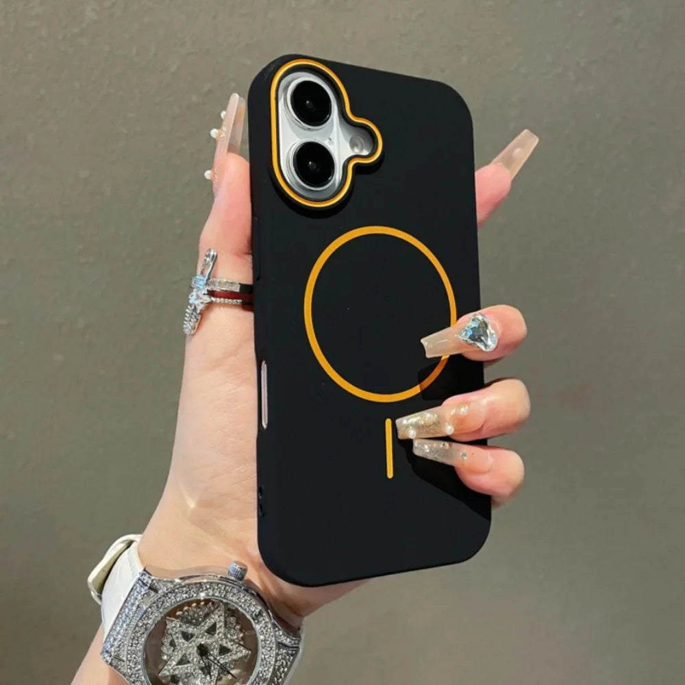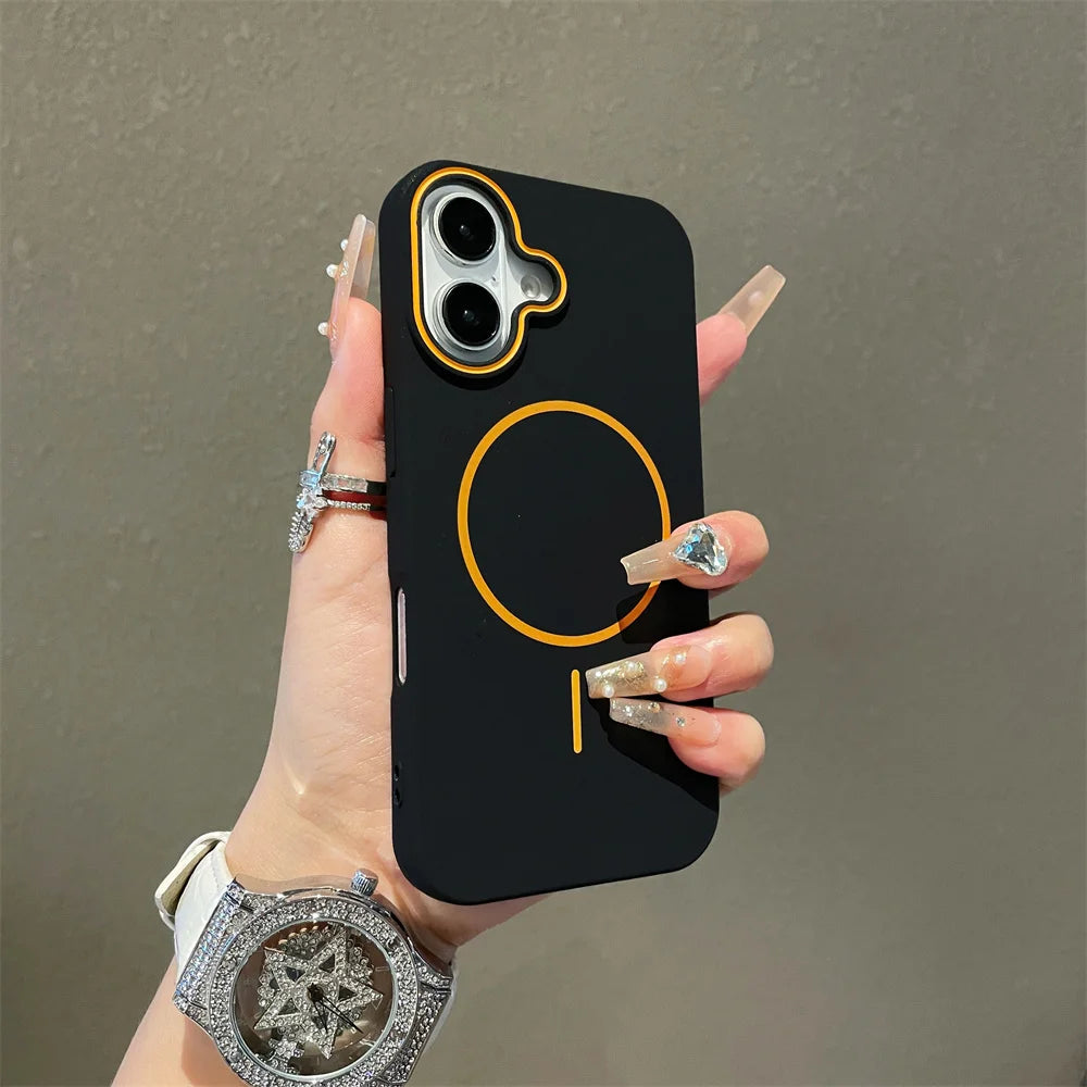 Ultrathin Simple Magsafe Case for iPhone 16 Pro Max 15 Pro 14 Plus 13 12 11 Matte Hit Color Lens Wireless Charging Soft TPU Cover