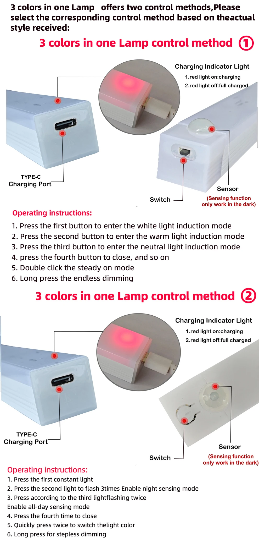 3 colors in one Lamp offers two control methods, Please select the corresponding control method based on theactual style received: