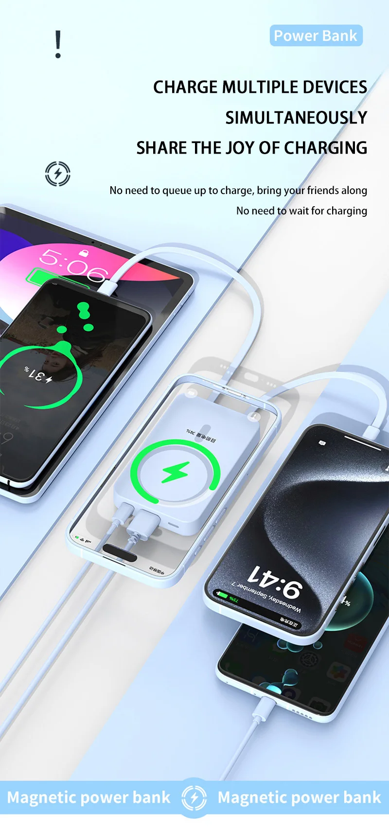 Xiaomi 100000mAh Power Bank Magnetic Wireless Fast Charging External Battery Pack Type-C Powerbank For IPhone16 Xiaomi SAMSUNG