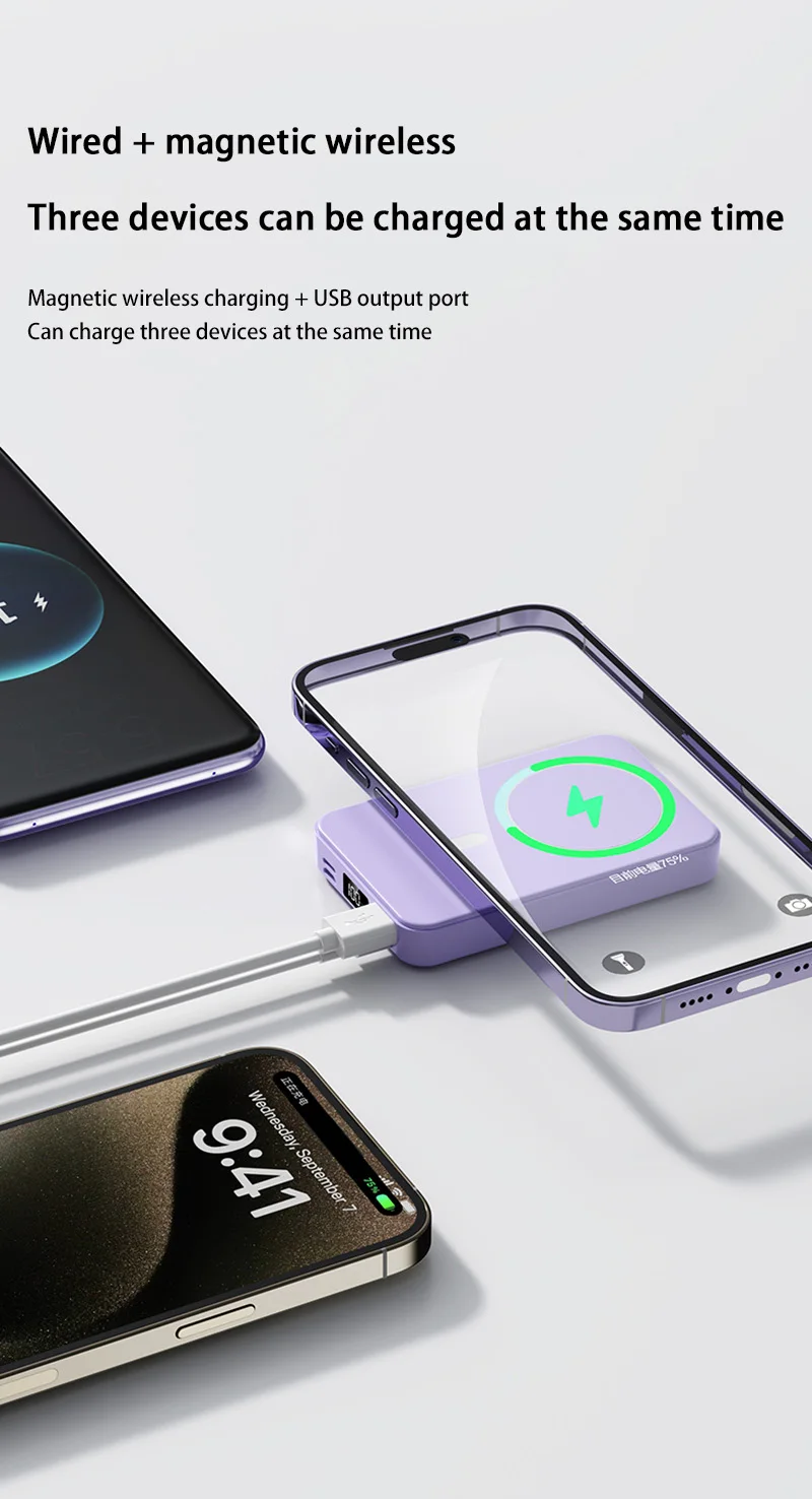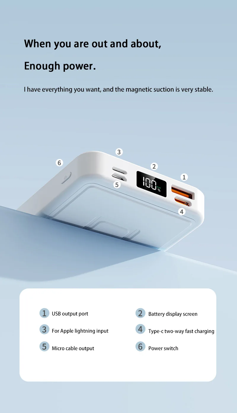 Support wireless fast charging, With digital display,suitable for all smartphones